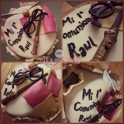 Así que su mami, que ya contó con nosotros hace unos años para la tarta de Comunión de su hija Lucía, nos pidió que si le hacíamos a su hijo para este día tan especial, una tarta de su personaje favorito: Harry Potter.... ¡¡Como nos íbamos a negar!! Y realmente estamos muy orgullosos del resultado.